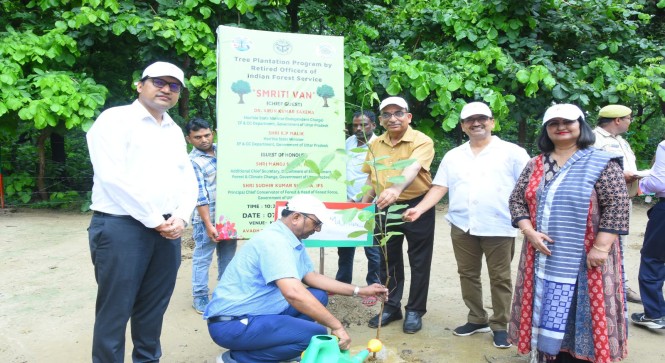 सेवानिवृत्त अधिकारियों द्वारा पौध रोपण किया गया