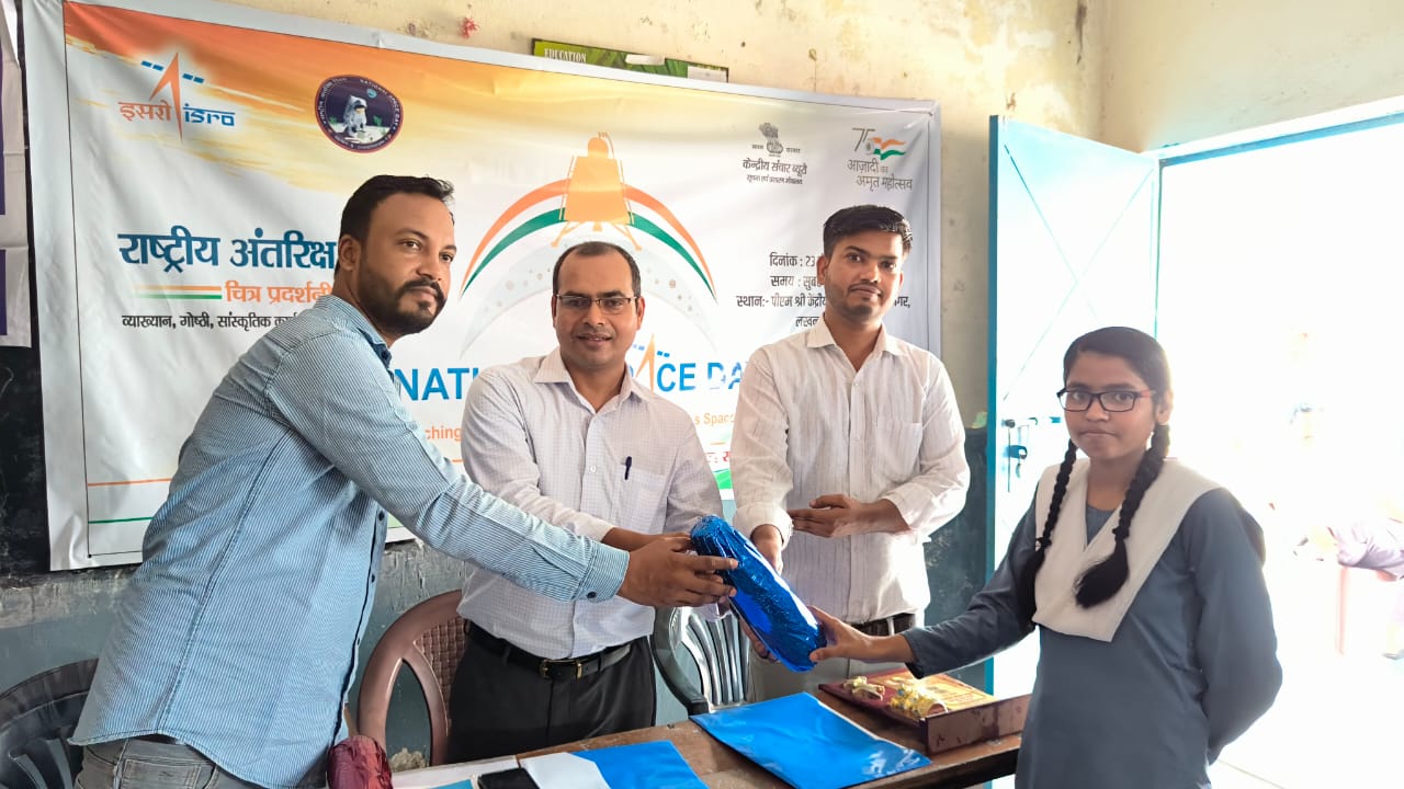 इस अवसर पर जीएसएम पब्लिक इंटर कॉलेज के विद्यार्थियो के बीच राष्ट्रीय अंतरिक्ष दिवस विषयक प्रश्नोत्तरी प्रतियोगिता का आयोजन श्री जय सिंह, क्षेत्रीय प्रचार अधिकारी ने किया और विजय प्रतिभागियों को आकर्षक पुरस्कार देकर विभाग द्वारा सम्मानित किया गया।