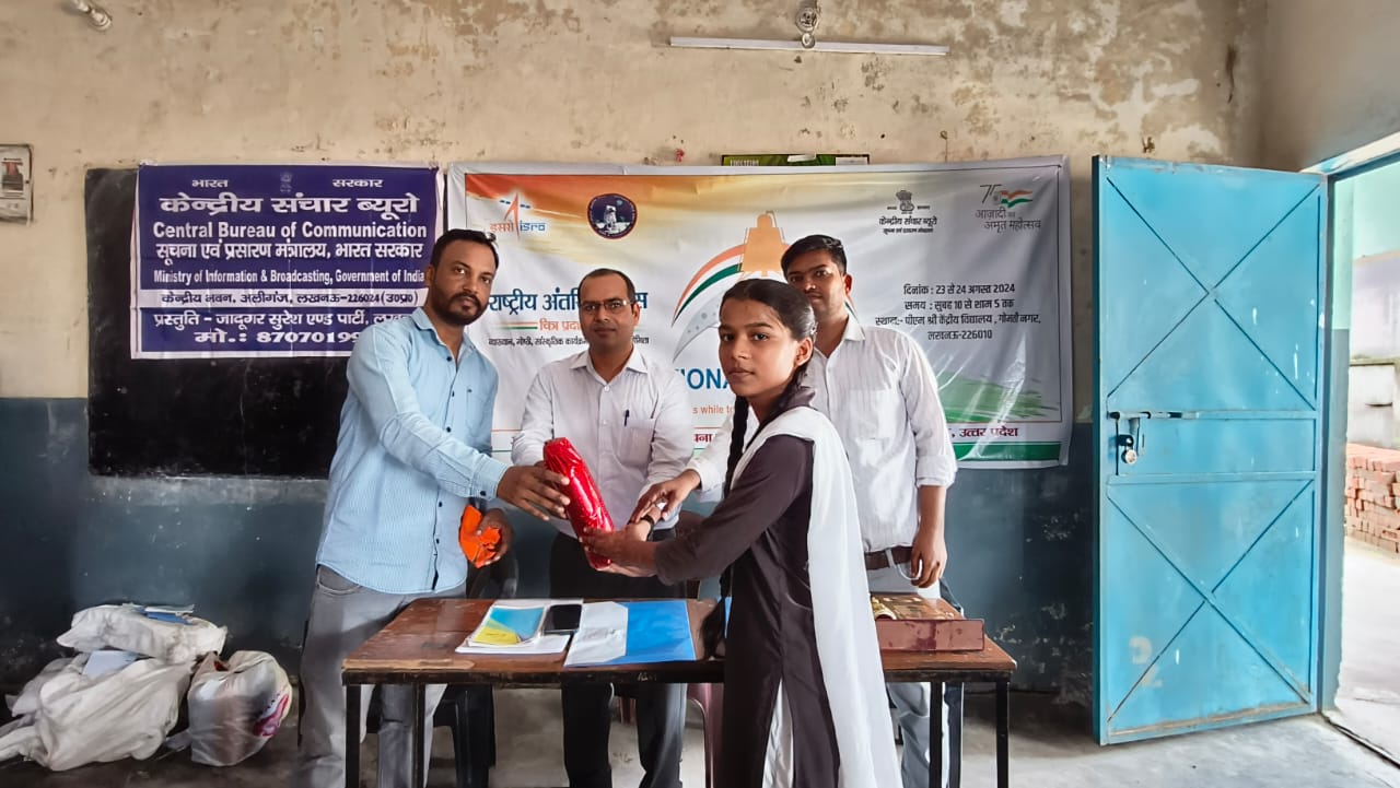 *लखनऊ, 22 अगस्त:* राष्ट्रीय अंतरिक्ष दिवस के अवसर पर सूचना एवं प्रसारण मंत्रालय द्वारा लखनऊ में कार्यक्रमों का आयोजन कर चंद्रयान , अंतरिक्ष और उससे संबंधित विभिन्न रोचक जानकारियों को चित्र प्रदर्शनी के माध्यम से दिया जा रहा है। इसी क्रम में उतर प्रदेश में केंद्रीय संचार ब्यूरों, लखनऊ द्वारा आज जीएसएम पब्लिक इंटर कालेज, सरोजनी नगर, लखनऊ में गोष्ठी, रैली, व्याख्यान और विभिन्न प्रतियोगितायें एवं सांस्कृतिक कार्यक्रम आयोजित किए गए। जिससे देश की युवा पीढी अंतरिक्ष के बारे में जान सके।