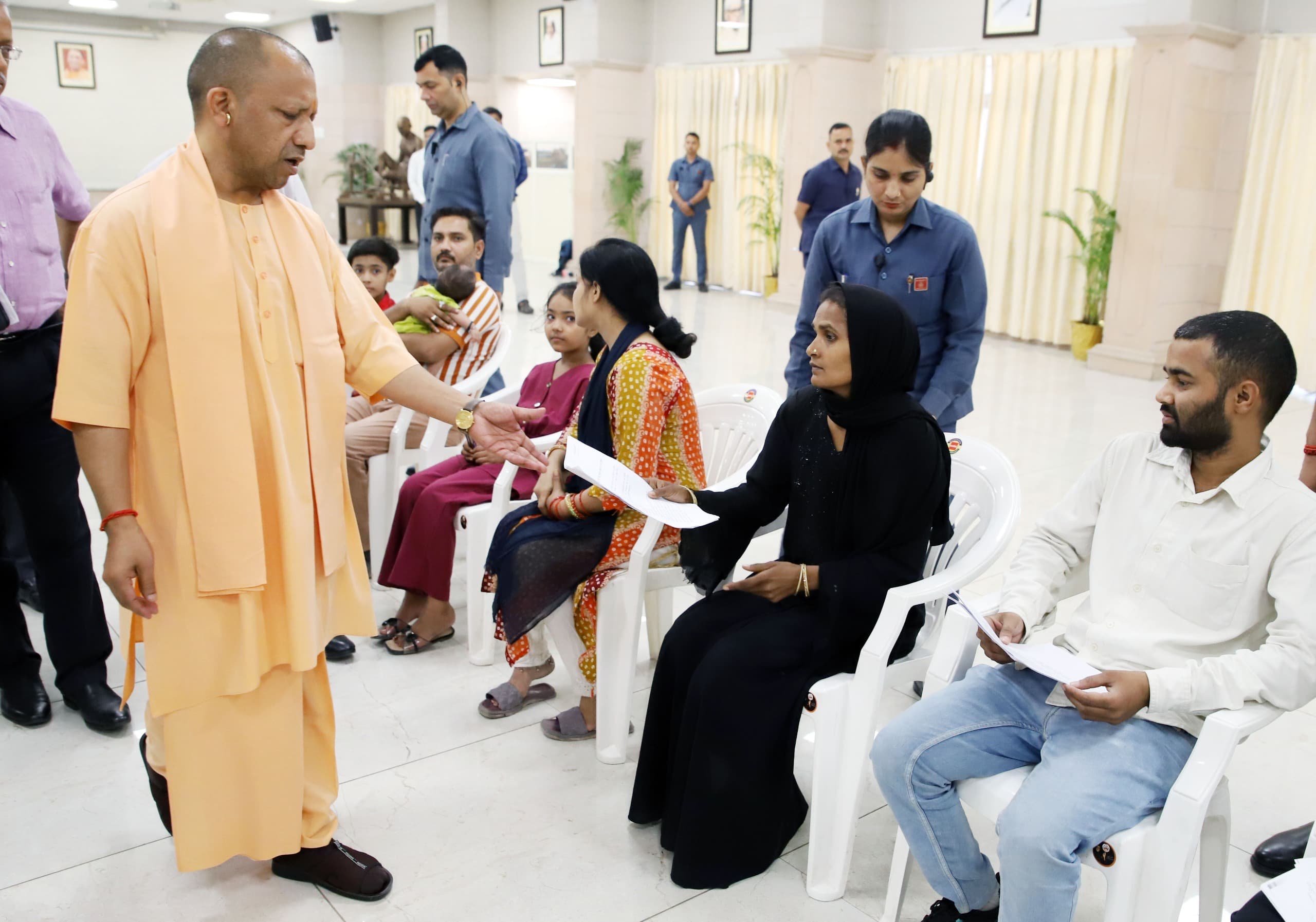 *लखनऊ, 4 मईः* मुख्यमंत्री योगी आदित्यनाथ ने रविवार को 'जनता दर्शन' किया। इस दौरान 60 से अधिक फरियादी आए। मुख्यमंत्री ने एक-एक करके सभी से मुलाकात की, फिर कुशलक्षेम पूछा। इसके बाद हर पीड़ित तक पहुंचे, शिकायतें सुनीं और अधिकारियों को निस्तारण के निर्देश दिए।