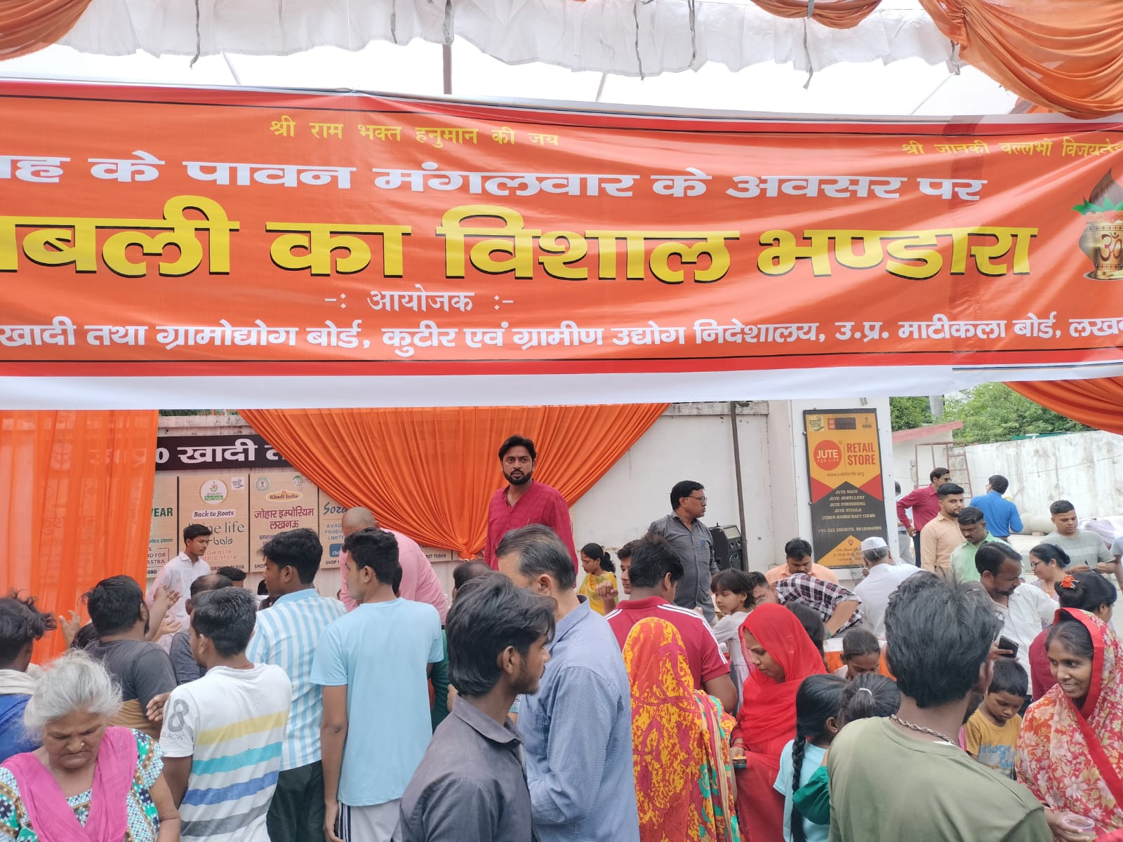 ज्येष्ठ माह के पावन बड़े मंगल के अवसर पर आज उत्तर प्रदेश खादी एवं ग्रामोद्योग बोर्ड मुख्यालय, लखनऊ में प्रभु राम के परम भक्त हनुमान जी को समर्पित विशाल भंडारे का आयोजन किया गया।