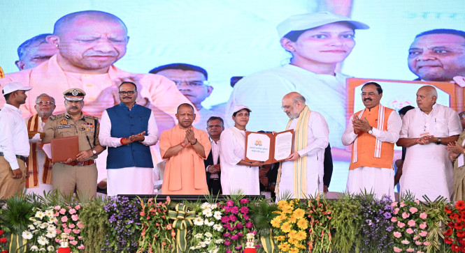*लखनऊ, 15 जून।* केंद्रीय गृह एवं सहकारिता मंत्री अमित शाह की मौजूदगी में रविवार को लखनऊ के वृंदावन योजना, सेक्टर 18 स्थित डिफेंस एक्स्पो ग्राउंड में आयोजित एक भव्य समारोह में 60,244 नवनियुक्त पुलिस कार्मिकों को नियुक्तिपत्र वितरित किये गये। इस ऐतिहासिक आयोजन में अपने संबोधन में अमित शाह ने उत्तर प्रदेश के मुख्यमंत्री योगी आदित्यनाथ की पारदर्शी और समावेशी भर्ती प्रक्रिया के लिए जमकर सराहना की। उन्होंने कहा कि योगी जी के नेतृत्व में उत्तर प्रदेश पुलिस ने न केवल भर्ती प्रक्रिया को निष्पक्ष और योग्यता आधारित बनाया, बल्कि हर जाति, जिले और तहसील के युवाओं को अवसर प्रदान कर एक नया कीर्तिमान स्थापित किया है। शाह ने विशेष रूप से इस बात पर जोर दिया कि इन नियुक्तियों में न खर्च, न पर्ची, न शिफारिश और न ही जाति के आधार पर कोई भेदभाव हुआ, बल्कि पूरी प्रक्रिया पारदर्शी और योग्यता के आधार पर संपन्न हुई।