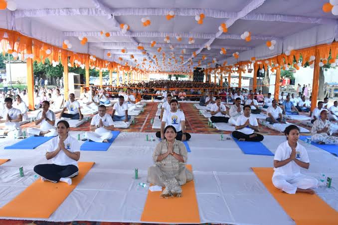 मंत्री रजनी तिवारी ने खीरी में अंतरराष्ट्रीय योग दिवस पर जनसमुदाय के साथ किया योगाभ्यास