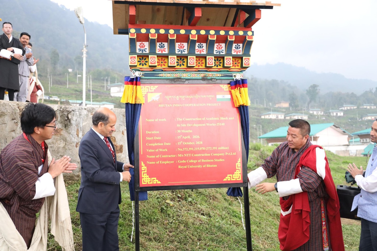 जनपत की खबर Apr 16, 2026 at 03:15 PM , 20थिम्पू। भारत के सहयोग से भूटान के गेदू कॉलेज ऑफ बिजनेस स्टडीज (जीसीबीएस) में 15 अप्रैल को एक नए अकादमिक ब्लॉक का शिलान्यास किया गया। यह परियोजना भारत और भूटान के बीच मजबूत विकास साझेदारी का एक हिस्सा है। इस नए ब्लॉक का निर्माण कॉलेज की बुनियादी ढांचागत सुविधाओं को बढ़ाने और छात्रों के लिए बेहतर शैक्षणिक वातावरण प्रदान करने के लिए किया गया है।