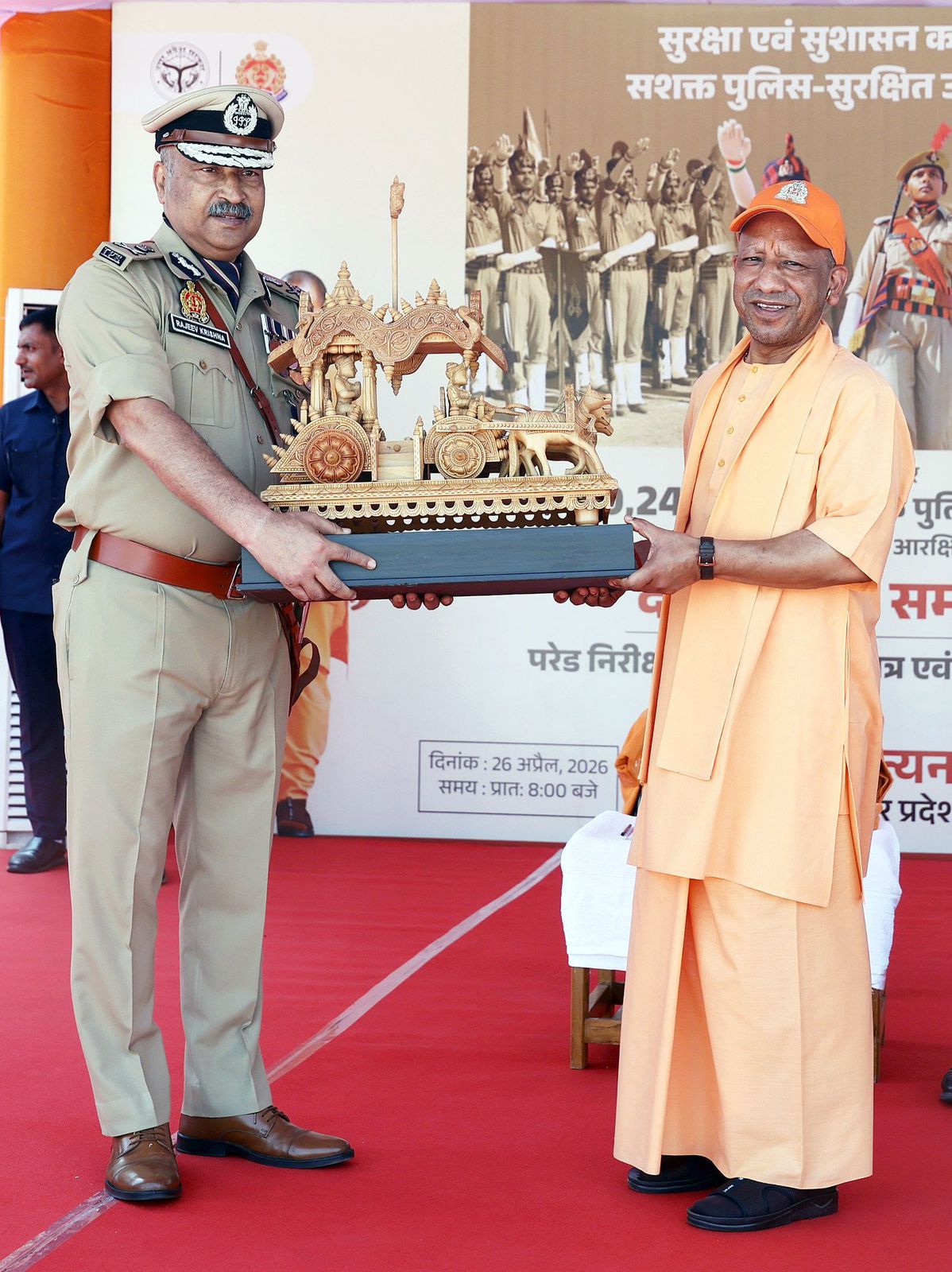 जनपत की खबर Apr 26, 2026 at 01:35 PM , 22*लखनऊ, 26 अप्रैल।* दीक्षांत परेड में मुख्यमंत्री योगी आदित्यनाथ के हाथों पुरस्कार पाकर आरक्षियों का हौसला भी बढ़ा। महिला आरक्षी नेहा यादव को तीन, सोनम को दो व रिया सिंह कुशवाहा को एक पुरस्कार प्रदान किया गया। पुलिस महानिदेशक राजीव कृष्ण ने मुख्यमंत्री योगी आदित्यनाथ को स्मृति चिह्न प्रदान किया। डीजीपी ने दीक्षांत परेड में आरक्षियों को शपथ भी दिलाई।