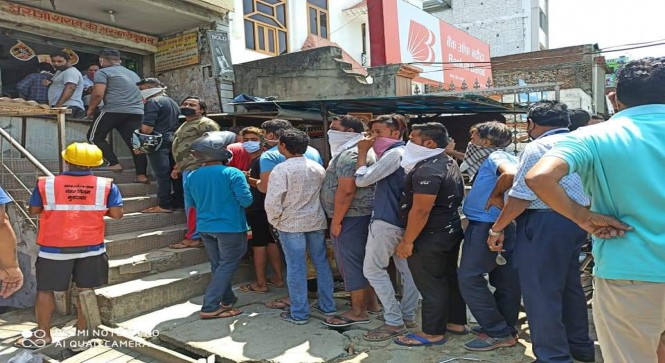 राजधानी क्षेत्र के शराब की दुकानों पर , सोशल डिस्टेंसिंग की धज्जियां खुले आम उड़ रही।