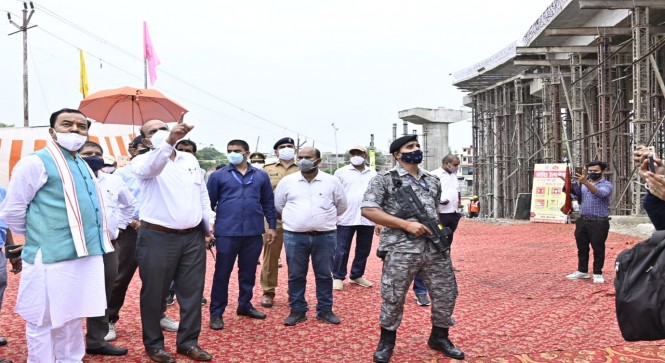 उप मुख्यमंत्री श्री केशव प्रसाद मौर्य ने आज प्रयाग स्टेशन के निकट बक्शी बांध में इलाहाबाद फाफामऊ रेलखण्ड के सम्पार संख्या 78ए पर 2 लेन रेल उपरिगामी सेतु के निर्माण कार्य का जायजा लिया। उन्होंने कार्यों की गुणवत्ता एवं समयावधि पर विशेष ध्यान देने को कहा है। उन्होंने सम्बंधित अधिकारियों को कार्यों को समय से पूर्ण कराने के निर्देश दिये। ब्रिज कार्पोरेशन के अभियंता ने मा0 उपमुख्यमंत्री जी को बताया कि सेतु निर्माण का कार्य तय समय से अधिक गति के साथ चल रहा है, कार्य को समय से पूर्ण कर लिया जायेगा। इस सेतु का निर्माण कार्य माह नवम्बर 2020 को शुरू हुआ था और नवम्बर, 2021 तक कार्य को पूर्ण कर लिया जायेगा।