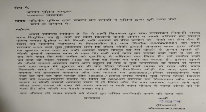 किसान शिवबरन ने चौकी इंचार्ज असलम पर मारने पीटने का आरोप लगाया है
