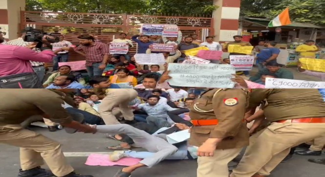 बीजेपी कार्यालय पर 69 हज़ार शिक्षक अभियार्थियो का प्रदर्शन