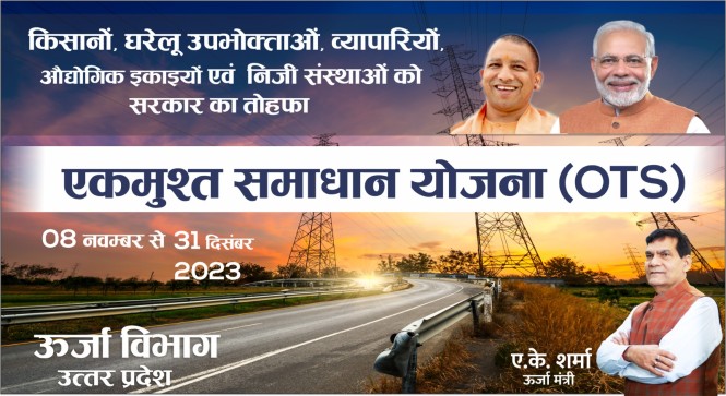 उत्तर प्रदेश की योगी सरकार ने बिजली उपभोक्ताओं को बिलम्बित भुगतान अधिभार (सरचार्ज) में छूट देने के लिए एकबार फिर से एकमुश्त समाधान योजना (ओटीएस) लागू कर दीपावली का बड़ा तोहफा दिया है। यह योजना 08 नवम्बर से सभी डिस्काम में लागू होगी। योजना का प्रथम चरण 08 से 30 नवम्बर तक रहेगा। इस अवधि में पंजीकरण कराने वाले ग्रामीण एवं शहरी क्षेत्रों के उपभोक्ताओं द्वारा बकाया चुकाने पर सरचार्ज में सर्वाधिक छूट मिलेगी।
