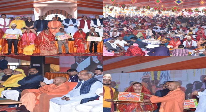 आदित्यनाथने बताया कि प्रदेश सरकार मुख्यमंत्री सामूहिक विवाह योजना के तहत वर्ष 2017 से अब तक करीब तीन लाख शादियां करा चुकी है। 2017 के पूर्व प्रति जोड़े विवाह पर 31 हजार रुपये खर्च किए जाते थे बाद में इसे बढ़ाकर 51 हजार रुपये कर दिया गया है।