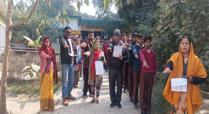 बेसिक विद्यालय अलीनगर सुनहरा में राष्ट्रीय मतदाता दिवस के अवसर पर शिक्षकों/अभिभावकों व छात्रों नें ली शपथ