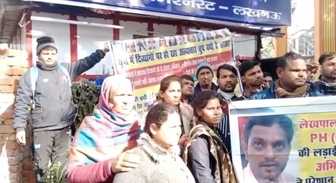 अपनी मांगों को लेकर सैकड़ो की संख्या में दिव्यांग कर रहे प्रदर्शन
