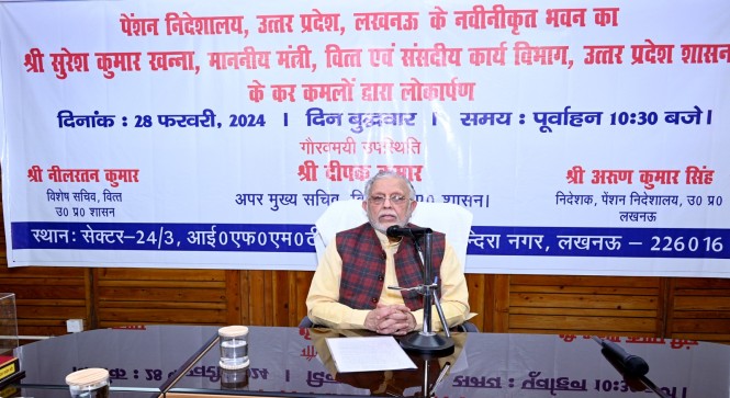 पेंशनर्स को बिना परेशानी समय से पेंशन के भुगतान समेत उनकी समस्त समस्याओं के निदान को प्रयासरत योगी सरकार ने पेंशनर्स को दी जाने वाली सेवाओं को और अधिक सुविधाजनक बनाने के लिए पेंशन निदेशालय के नवीन भवन का शुभारंभ किया है। उत्तर प्रदेश के वित्त एवं संसदीय कार्य मंत्री सुरेश कुमार खन्ना ने आज इंदिरा नगर लखनऊ में वित्तीय प्रबंध प्रशिक्षण एवं शोध संस्थान परिसर में पेंशन निदेशालय के नवीन भवन का उद्घाटन किया। इस अवसर पर वित्त मंत्री ने कहा कि पेंशनर्स की पेंशन समय से निस्तारित की जाए, ये हमारी प्राथमिकता होनी चाहिए। कोई भी वजह हो, लेकिन पेंशनर्स को किसी तरह की परेशानी नहीं होनी चाहिए। उन्होंने निदेशालय में कार्यरत कर्मियों को संबोधित करते हुए कहा कि हमें बुजुर्गों की सेवा का अवसर मिला है। ये पेंशनर्स हमारे बीच के ही लोग हैं। उनकी सेवा करना आपका कर्तव्य है।