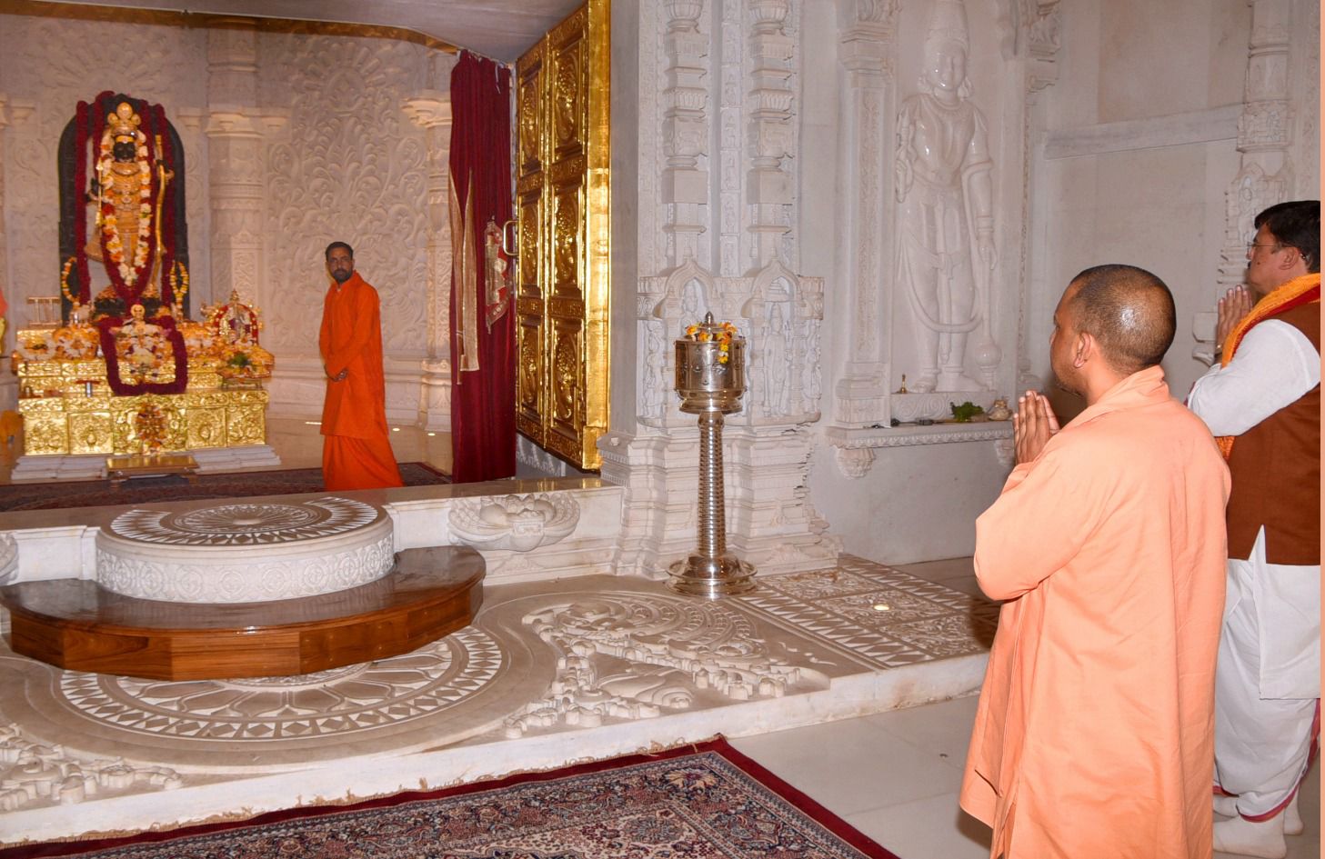हनुमानगढ़ी में दर्शन-पूजन के उपरांत मुख्यमंत्री योगी आदित्यनाथ ने रामलला के दर्शन-पूजन किए। वहीं मंदिर परिसर में अधिकारियों से व्यवस्था की जानकारी ली। सीएम योगी ने रामलला के मंदिर में साष्टांग दंडवत होकर प्रभु श्रीराम से प्रदेशवासियों के सुख और समृद्धि की कामना की।