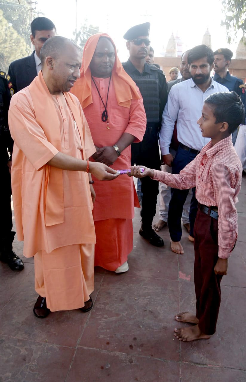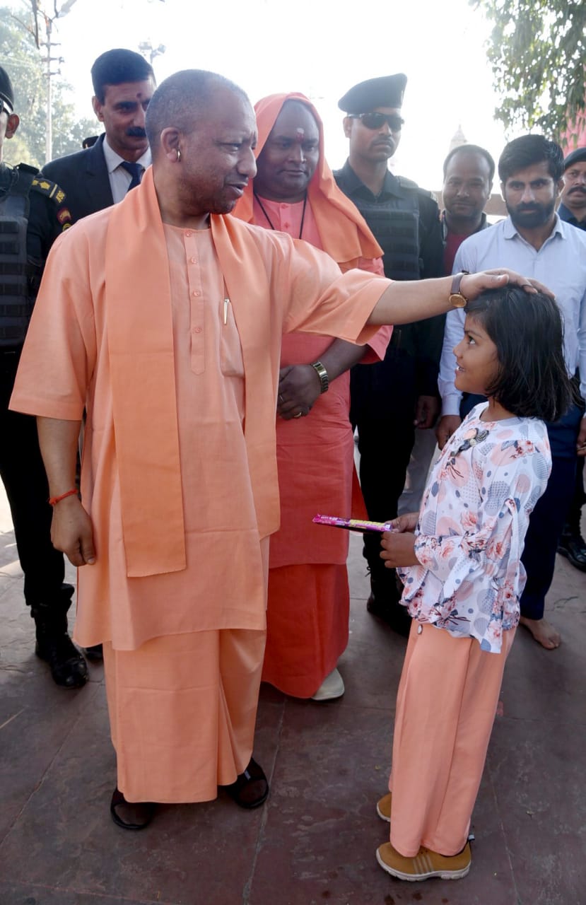 *बलरामपुर, 15 मार्च।* दो दिवसीय दौरे पर बलरामपुर पहुंचे मुख्यमंत्री योगी आदित्यनाथ ने दूसरे दिन सुबह सुबह 51 शक्तिपीठों में से एक देवी पाटन मंदिर में दर्शन पूजन किया। मंदिर में विधि विधान से दर्शन पूजन के उपरांत मुख्यमंत्री ने देवीपाटन मंदिर में निर्माणाधीन कार्यों का निरीक्षण किया। उन्होंने यहां गौशाला में गौ-सेवा की और श्री मां पाटेश्वरी सेवाश्रम चिकित्सालय का निरीक्षण करते हुए अधिकारियों को आवश्यक दिशा-निर्देश दिये। इसके उपरांत मुख्यमंत्री भवनियापुर स्थित मां पाटेश्वरी पब्लिक स्कूल पहुंचे। यहां उन्होंने स्कूली बच्चों संग कुछ देर व्यतीत किया। सीएम योगी ने बच्चों से उन्हें मिलने वाली सुविधाओं के बारे में जानकारी प्राप्त की। मुख्यमंत्री को देख बच्चों की खुशी का ठिकाना नहीं रहा। सीएम योगी ने बच्चों को टॉफियां और चॉकलेट भी बांटी। इसके बाद वह मां पाटेश्वरी देवी राज्य विश्वविद्यालय के भूमिपूजन और शिलान्यास कार्यक्रम में शामिल होने रवाना हो गये।