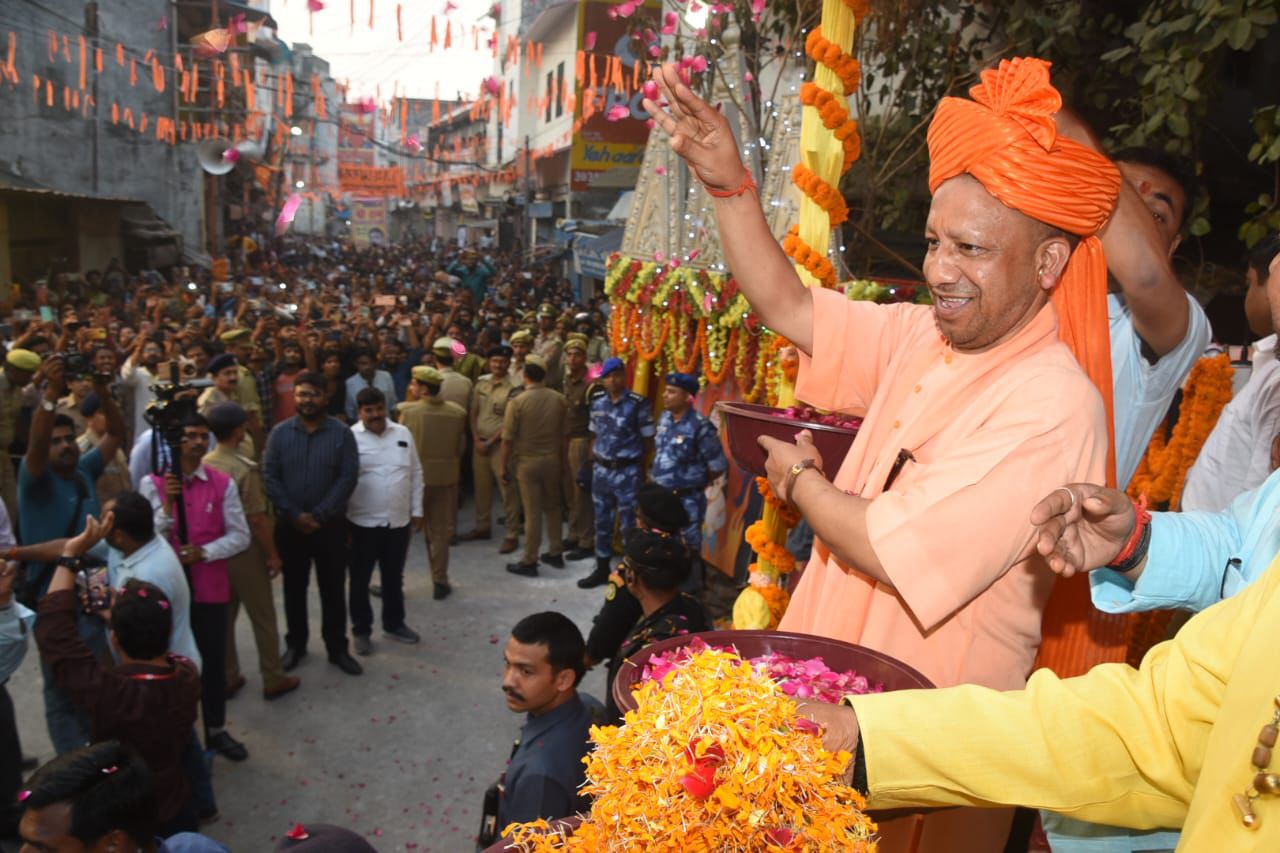 मुख्यमंत्री योगी आदित्यनाथ ने अपने संबोधन के उपरांत होलिका दहन शोभायात्रा के लिए सजाए गए रथ पर अवस्थित भक्त प्रहलाद की आरती उतारी। उनके चित्र पर फूल बरसाने के बाद बड़े ही उमंग से उपस्थित जनसमूह पर पुष्प वर्षा करते हुए फूलों से होली खेली। शोभायात्रा को लेकर लोगों का उत्साह देखते ही बन रहा था। इस अवसर पर महापौर डॉ. मंगलेश श्रीवास्तव, विधायक विपिन सिंह, कालीबाड़ी के महंत रविंद्रदास, काशी से आए महामंडलेश्वर संतोष दास उर्फ सतुआ बाबा, पूर्व पार्षद रामभुआल कुशवाहा, होलिका दहन उत्सव समिति के अध्यक्ष विपिन पटवा समेत समस्त पदाधिकारी और बड़ी संख्या में श्रद्धालु उपस्थित रहे। होलिका दहन शोभायात्रा में रथ पर सजाई गई झांकियां सबके आकर्षण का केंद्र बनी हुईं थीं। इसमें श्रीरामलला और राम मंदिर की झांकी के साथ ही श्रीगणेश जी, शंकर पार्वती, राम सीता, ब्रह्मा सरस्वती, हनुमान जी, काली जी, बरसाने और मसाने की होली की झांकियां सम्मिलित थीं।