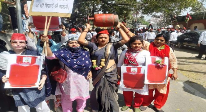 पेट्रोल डीजल रसोई गैस की बढ़ती कीमतों के विरोध में प्रदर्शन।