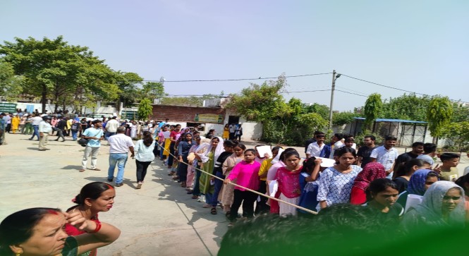 सीनेट का पेपर देने आए बच्चों को स्कूल प्रशासन नें घन्टों धूप में खड़ा रखा।