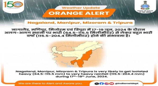 मौसम विभाग ने अगले तीन दिनों तक उप-हिमालयी पश्चिम बंगाल, असम और मेघालय में तेज वर्षा का अनुमान व्यक्त किया है। अगले पांच दिन के दौरान अरुणाचल प्रदेश, असम, मेघालय, नागालैंड, मणिपुर, मिजोरम और त्रिपुरा में भी हल्की से मध्यम बारिश होने की संभावना है। दक्षिण-पश्चिम मानसून के महाराष्ट्र, छत्तीसगढ़, ओडिशा, तटीय आंध्र प्रदेश, उत्तर-पश्चिम बंगाल की खाड़ी, पश्चिम बंगाल के गांगेय क्षेत्रों और बिहार के कुछ हिस्सों में अगले 4 दिन के दौरान आगे बढ़ने के लिए हालात अनुकूल हैं: मौसम विभाग