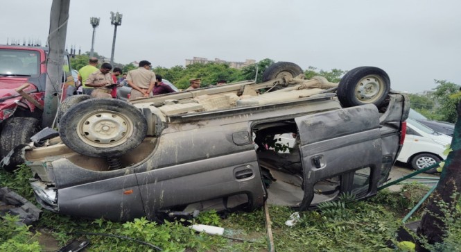 लखनऊ के शहीद पथ पर भीषण हादसा, स्कूली वैन और थार में टक्कर वैन में सवार 12 बच्चों में दो की हालत गंभीर