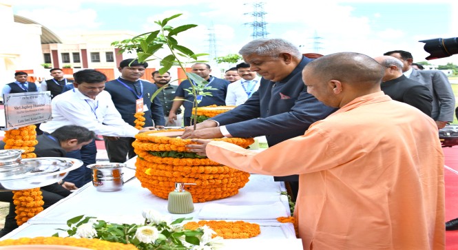 गोरखपुर, 7 सितंबर। पहली बार गोरखपुर आए उपराष्ट्रपति जगदीप धनखड़ ने शनिवार को सैनिक स्कूल का लोकार्पण करने के बाद गोरखनाथ मंदिर जाकर शिवावतार महायोगी गुरु गोरखनाथ जी का दर्शन-पूजन किया। साथ में उनकी पत्नी डॉ. सुदेश धनखड़ भी उपस्थित रहीं। दर्शन-पूजन का अनुष्ठान मुख्यमंत्री एवं गोरक्षपीठाधीश्वर योगी आदित्यनाथ ने खुद अपनी देखरेख में संपन्न कराया। गुरु गोरखनाथ के चरणों में शीश नवाकर और महायोगी के मंदिर के गर्भगृह में प्रज्वलित अखंड ज्योति की महत्ता जानकर उपराष्ट्रपति भावविभोर हो गए।
