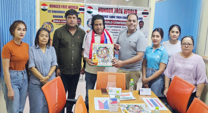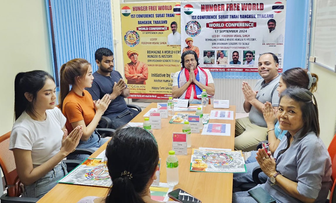 थाईलैंड के कोराथई में समाजसेवी फ़ूडमैन विशाल सिंह के नेतृत्व में हंगर फ्री वर्ल्ड मिशन की बैठक आयोजित हुई। इस बैठक में थाईलैंड के राजा द्विवेदी( प्रबंध निदेशक, हैप्पी हैंड्स ग्लव्स कंपनी लिमिटेड), एवं थाईलैंड कोआर्डिनेट राजा मिश्रा जी,वरुण सिंह(सदस्य )सहित अनेक देशों के प्रतिनिधियों ने भाग लिया।