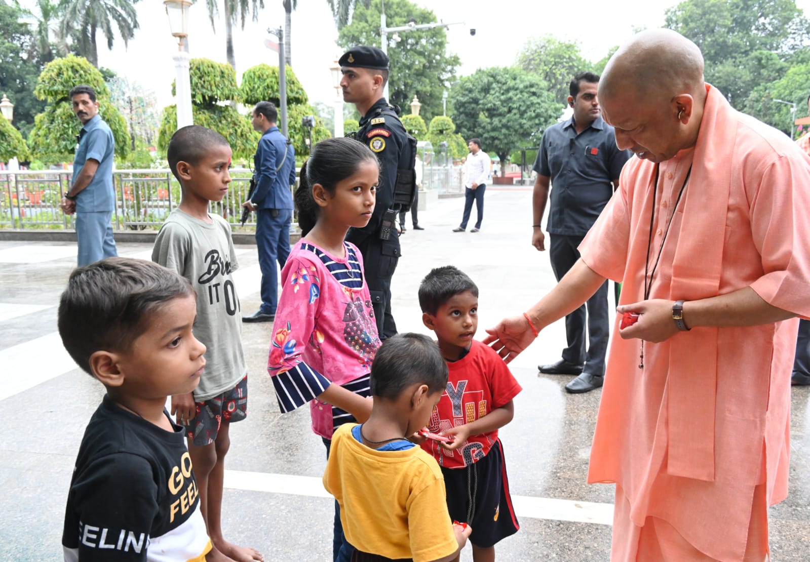 शनिवार देर शाम गोरखपुर पहुंचे मुख्यमंत्री योगी आदित्यनाथ की रविवार सुबह की दिनचर्या परंपरागत रही। हर बार की तरह उन्होंने प्रातःकाल गोरखनाथ मंदिर में गुरु गोरखनाथ का दर्शन-पूजन किया और अपने गुरु ब्रह्मलीन महंत अवेद्यनाथ की समाधि स्थल पर जाकर मत्था टेका। इसके बाद मंदिर परिसर का भ्रमण करने निकले। भ्रमण के दौरान मुख्यमंत्री की नजर परिजनों के साथ मंदिर में दर्शन पूजन करने आए बच्चों पर पड़ी। मुस्कुराते हुए उन्होंने बच्चों को अपने पास बुला लिया और बातचीत करने लगे।। बच्चों से उनका नाम पूछा, कहां से आए हैं, इसकी जानकारी ली। मुख्यमंत्री ने इन बच्चों से खूब हंसी ठिठोली भी की। स्नेहाशीष देने के साथ सबको चॉकलेट गिफ्ट की।