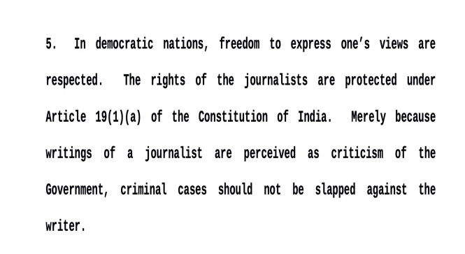 सरकार की आलोचना के लिए किसी पत्रकार के खिलाफ मुकदमा दर्ज नहीं होना चाहिए : सुप्रीम कोर्ट