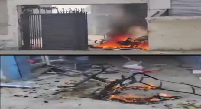 हीरो होंडा शोरूम के अंदर घुसकर कई गाड़ियों में आग लगाई