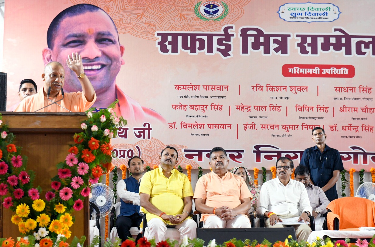 सीएम योगी शनिवार शाम राप्ती नगर के अंबेडकर पार्क में नगर निगम की तरफ से आयोजित सफाई मित्र सुरक्षा सम्मेलन और सम्मान समारोह को संबोधित कर रहे थे। समारोह में सफाई मित्रों को मुख्यमंत्री ने प्रमाण पत्र और मिठाई का उपहार देकर सम्मानित किया गया। इस अवसर पर सभी लोगों को दीपोत्सव की बधाई एवं शुभकामनाएं देते हुए मुख्यमंत्री ने कहा कि उनके लिए यह अत्यंत प्रसन्नता का क्षण है कि दीपावली के मुख्य पर्व से गोरखपुर महानगर को स्वच्छ और सुंदर बनाने में सर्वाधिक भूमिका निभाने वाले सफाईकर्मियों को सम्मानित करने का अवसर मिला है। आज पूरा गोरखपुर इन सफाईकर्मियों के योगदान से स्वच्छ और सुंदर नजर आता है। पहले ऐसी स्थिति नहीं थी। जगह-जगह कूड़ा पड़ा रहता था। जल जमाव से बच्चे और बुजुर्ग अनेक बीमारियों की चपेट में आते थे। गंदगी से महानगर की छवि पर बुरा असर पड़ता था। गंदगी और जल जमाव समाप्त होने से गोरखपुर स्वच्छ बना तो बीमारियां भी समाप्त हो गईं। अब गोरखपुर की पहचान गंदगी से नहीं बल्कि साफ सुथरे वातावरण और चौड़ी सड़कों से है। जो यहां आता है यहां का वातावरण और विकास देखकर अभिभूत हो जाता है।
