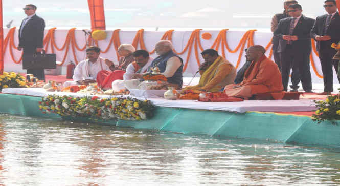 *प्रधानमंत्री मोदी ने संगम नोज में कुम्भ कलश का किया कुम्भाभिषेक*