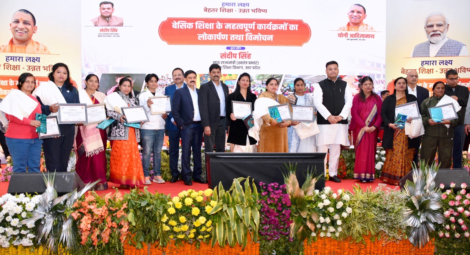 प्रमुख सचिव बेसिक शिक्षा ने बताया कि इस कार्यक्रम में राष्ट्रीय एवं राज्य स्तरीय खेलों में प्रतिभाग कर चुकी कस्तूरबा गांधी आवासीय बालिका विद्यालय की 30 बालिकाओं एवं उत्कृष्ट कार्य करने वाली 05 वार्डेन एवं 05 व्यायाम शिक्षिकाओं को भी पुरस्कृत किया गया। नयी पीढ़ी में विज्ञान के प्रति अभिरूचि विकसित करने के उद्देश्य से संचालित राष्ट्रीय आविष्कार अभियान के अन्तर्गत आयोजित प्रदर्शनी एवं प्रतियोगिताओं में उत्कृष्ट प्रदर्शन करने वाले 12 छात्र-छात्राओं को पुरस्कृत कर उनका मनोबल बढ़ाने का प्रयास किया गया। जहाँ छात्र-छात्राओं के बुनियादी भाषा एवं अंकीय दक्षता में गुणवत्तापूर्ण संवर्द्धन हेतु संचालित निपुण भारत कार्यक्रम में उत्कृष्ट योगदान देने वाले 75 प्रधानाध्यापकों एवं 76 खण्ड शिक्षा अधिकारियों को सम्मानित किया गया, वहीं विद्यालयों में व्यवहृत होने वाली विभिन्न पंजिकाओं के डिजिटलाइजेशन में सर्वाेत्कृष्ट प्रदर्शन वाले प्रदेश के 05 विकास खण्डों के खण्ड शिक्षा अधिकारियों एवं 05 जनपदों के जिला बेसिक शिक्षा अधिकारियों को भी सम्मानित किया गया। निःशुल्क और अनिवार्य बाल शिक्षा का अधिकार अधिनियम 2009 की धारा 12 (1) (सी) के अर्न्तगत निजी विद्यालयों में वंचित व दुर्बल वर्ग के बालकों का निःशुल्क प्रवेश कराने में बेहतर कार्य करने वाले 03 जिला बेसिक शिक्षा अधिकारियों को तथा बेसिक शिक्षा के विद्यालयों के आधारभूत सुविधाओं के सुदृढ़ीकरण में योगदान देने वाले 05 सी०एस०आर० संस्थाओं को भी सम्मानित किया गया।
