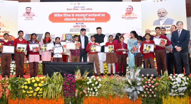 प्रदेश के बेसिक शिक्षा राज्य मंत्री (स्वतंत्र प्रभार) श्री संदीप सिंह ने कहा कि मा० मुख्यमंत्री जी के मार्गदर्शन एवं कुशल नेतृत्व में बेसिक शिक्षा के क्षेत्र में उत्तर प्रदेश ने विगत वर्षों में उल्लेखनीय प्रगति हासिल की है। विद्यालयों की आधारभूत सुविधाओं के सुदृढ़ीकरण हेतु संचालित ऑपरेशन कायाकल्प, छात्र-छात्राओं के कक्षानुरूप दक्षताओं हेतु संचालित निपुण भारत मिशन, डिजिटल लर्निंग हेतु स्थापित किये जाने वाले स्मार्ट क्लास व आई०सी०टी० लैब्स, मॉनिटरिंग हेतु शिक्षकों को उपलब्ध कराये गये टैबलेट्स व राज्य स्तर पर स्थापित विद्या समीक्षा केन्द्र, गर्वनेन्स मे स्वच्छता एवं पारदर्शिता हेतु संचालित डी०बी०टी० कार्यक्रम एवं मानव सम्पदा पोर्टल जैसे कार्यक्रमों के फलस्वरूप बेसिक शिक्षा विभाग में आमूल-चूल सकारात्मक परिवर्तन आया है, जिसे पूरा प्रदेश ही नहीं, बल्कि पूरा राष्ट्र भी महसूस कर रहा है। किन्तु अभी हमें और भी आगे जाना है। उन्होंने यह विचार बेसिक शिक्षा विभाग, उ०प्र० द्वारा इन्दिरा गाँधी प्रतिष्ठान के मरकरी हॉल में एक बृहद एवं भव्य कार्यक्रम में व्यक्त कर रहें थे। इस अवसर पर कार्यक्रम में अनेक महत्वपूर्ण विभागीय योजनाओं का लोकार्पण/शुभारम्भ करने के साथ-साथ उत्कृष्ट प्रदर्शन करने वाले छात्र-छात्राओं, अध्यापकों व अधिकारियों को पुरस्कृत/सम्मानित कर विभागीय कर्मियों के बीच एक सकारात्मक संदेश प्रसारित करने का प्रयास किया गया।