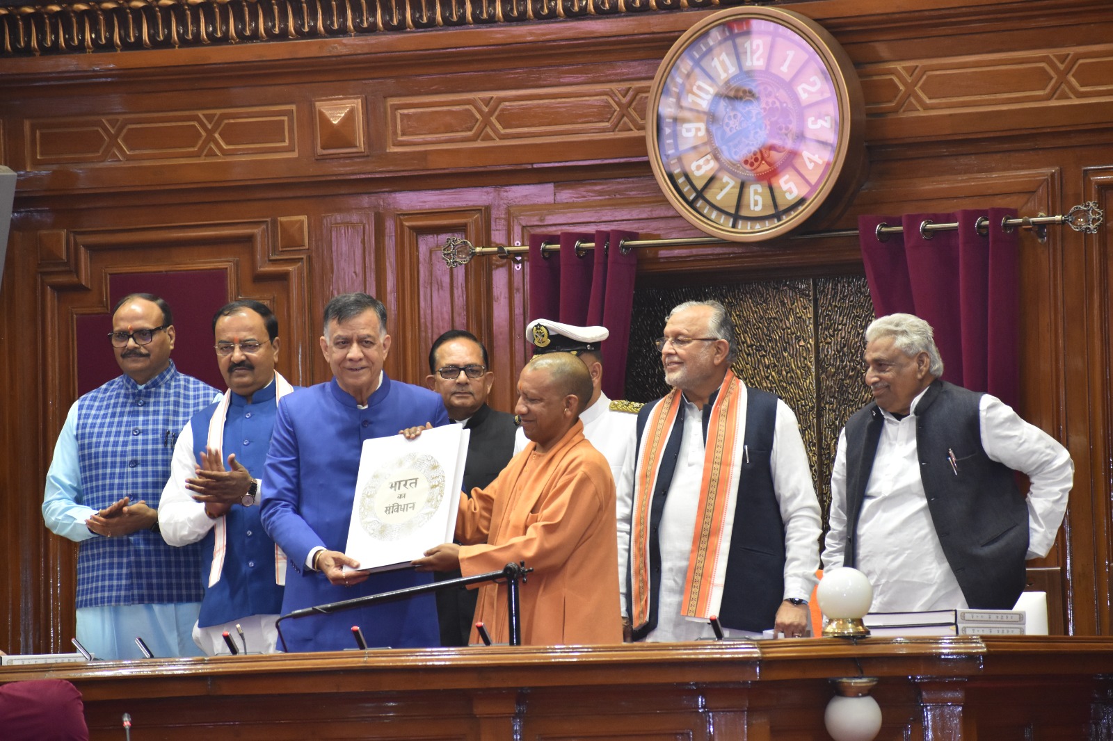 दर्शक दीर्घा के उद्घाटन के अवसर पर विधानसभा अध्यक्ष सतीश महाना ने मुख्यमंत्री समेत मंच पर उपस्थित सभी मंत्रियों एवं नेता विपक्ष को मूल संविधान की एक-एक प्रति भेंट की। इस दौरान मुख्यमंत्री ने विधानसभा द्वारा प्रकाशित दो पुस्तकों का भी विमोचन किया। इन पुस्तकों में देश की आजादी से लेकर अब तक मुख्यमंत्री और नेता विपक्ष की संपूर्ण जानकारी दी गई है।