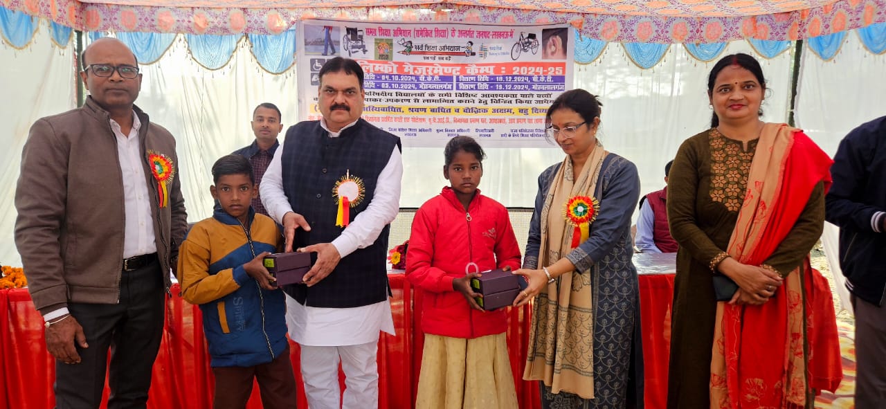 राज्य परियोजना निदेशक समग्र शिक्षा, लखनऊ और जिला बेसिक शिक्षा अधिकारी, लखनऊ के आदेश के अंतर्गत दिनांक 18/12/2024 बुधवार को सभी विकास खण्डों के लिए बीआरसी बीकेटी में दिव्यांग उपकरण वितरण शिविर का आयोजन किया गया। कार्यक्रम में 75 दिव्यांग बच्चों को उनके आवश्यक उपकरण वितरित किए गए। कार्यक्रम की शुरुआत मुख्य अतिथि प्रमुख प्रतिनिधि श्री अवधेश कुमार अवस्थी, नगर पंचायत अध्यक्ष, खण्ड शिक्षा अधिकारी, श्रीमती प्रीती शुक्ला, बीकेटी, ने मां सरस्वती की प्रतिमा पर माल्यार्पण और दीप प्रज्ज्वलन के साथ की। जिला समन्वयक समेकित शिक्षा डॉ अमरेश सिंह ने कार्यक्रम के उद्देश्यों और महत्व पर विस्तृत चर्चा की। मंच संचालन श्रीमती वंदना वर्मा, विशेष शिक्षक, चिनहट द्वारा किया गया। कार्यक्रम में 75 बच्चों को उनके विशेष आवश्यकताओं के अनुसार उपकरण वितरित किए गए। मुख्य अतिथि श्री अवधेश कुमार ने सरकार की योजनाओं के लाभ को पात्र दिव्यांग बच्चों तक पहुंचाने की प्रतिबद्धता व्यक्त की। उन्होंने कहा कि सरकार की योजनाओं का क्रियान्वयन प्रभावी रूप से हो, इसके लिए हर संभव सहयोग किया जाएगा। जिला समन्वयक ने दिव्यांग बच्चों को शिक्षा की मुख्य धारा से जोड़ने के लिए अभिभावकों को जागरूक करने पर बल दिया। कार्यक्रम के सफल आयोजन में खण्ड शिक्षा अधिकारी, श्रीमती प्रीती शुक्ला, बीकेटी, बाबू राजेश सिंह एवं एआरपी श्री अनुराग सिंह राठौर व विशेष शिक्षक मंजरी मिश्रा, रश्मी सिंह व अन्य विकासखंडों के समस्त विशेष शिक्षकों का विशेष योगदान रहा। एलिम्को कानपुर टीम ने उपकरण वितरण में कुशलता पूर्वक सहयोग किया।
