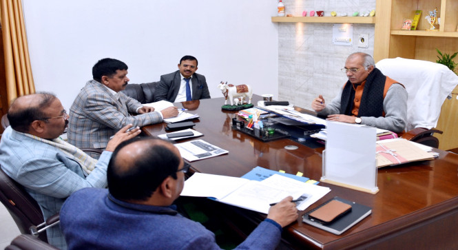 बैठक में पशुधन एवं दुग्ध विकास विभाग के प्रमुख सचिव श्री के0 रवीन्द्र नायक ने मंत्री जी को विभागीय योजनाओं की अद्यतन प्रगति से अवगत कराया। वर्तमान में 7695 गोआश्रय स्थलों पर 1231198 निराश्रित गोवंश संरक्षित हैं। प्रमुख सचिव ने विभागीय अधिकारियों को निर्देश दिये कि निराश्रित गोंवश के ठंड से बचाव हेतु पर्याप्त इंतजाम किये जाए और जहां कहीं भी कोई समस्या हो उसे तत्काल शासन को अवगत कराया जाए। गोआश्रय स्थलों के निरीक्षण के समय पशु चिकित्साधिकारी सभी बिन्दुओं की समीक्षा करें और निरीक्षण रिपोर्ट पोर्टल पर अपलोड करें।