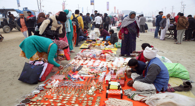 मुख्यमंत्री योगी आदित्यनाथ ने हाल ही में प्रयागराज विजिट के दौरान कहा था कि यह महाकुम्भ प्रयागराज के साथ ही पूरे प्रदेश की इकॉनमी को मजबूती देने वाला होगा। इसके माध्यम से इकॉनमी में दो लाख करोड़ रुपए की वृद्धि संभावित है। महाकुम्भ के पहले ही दिन भारी संख्या में श्रद्धालु संस्थाओं के भंडारों के साथ-साथ इन दुकानदारों पर भी खरीदारी करते रहे। खान-पान से लेकर पूजा सामग्री की सबसे ज्यादा खरीद हुई। खाने पीने का सामान बेचने वाले हरदोई के रामकुमार ने बताया कि दो हफ्ते पहले ही महाकुम्भ में आए हैं। यहां श्रद्धालुओं का पेट भरने के साथ ही पुण्य कमाने का भी अवसर है। किसी तरह का कोई एक्स्ट्रा चार्ज नहीं लिया जा रहा है। कोई हमें यहां परेशान भी नहीं कर रहा। इसी तरह, भदोही से आए सुनील यहां लोगों को चाय पिला रहे हैं। सुनील ने बताया कि 45 दिन तक महाकुम्भ में आय के लिए आए हैं। पहले दिन श्रद्धालुओं को सर्दी में चाय वितरित कर रहे हैं। किसी तरह की एक्स्ट्रा चार्ज नहीं लिया जा रहा।