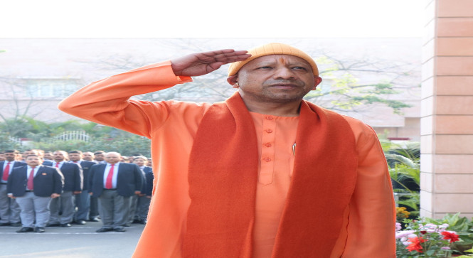 76वें गणतंत्र दिवस के मौके पर माननीय मुख्यमंत्री योगी आदित्यनाथ जी रविवार को राजधानी लखनऊ में अपने सरकारी आवास पर झंडारोहण करते हुए।
