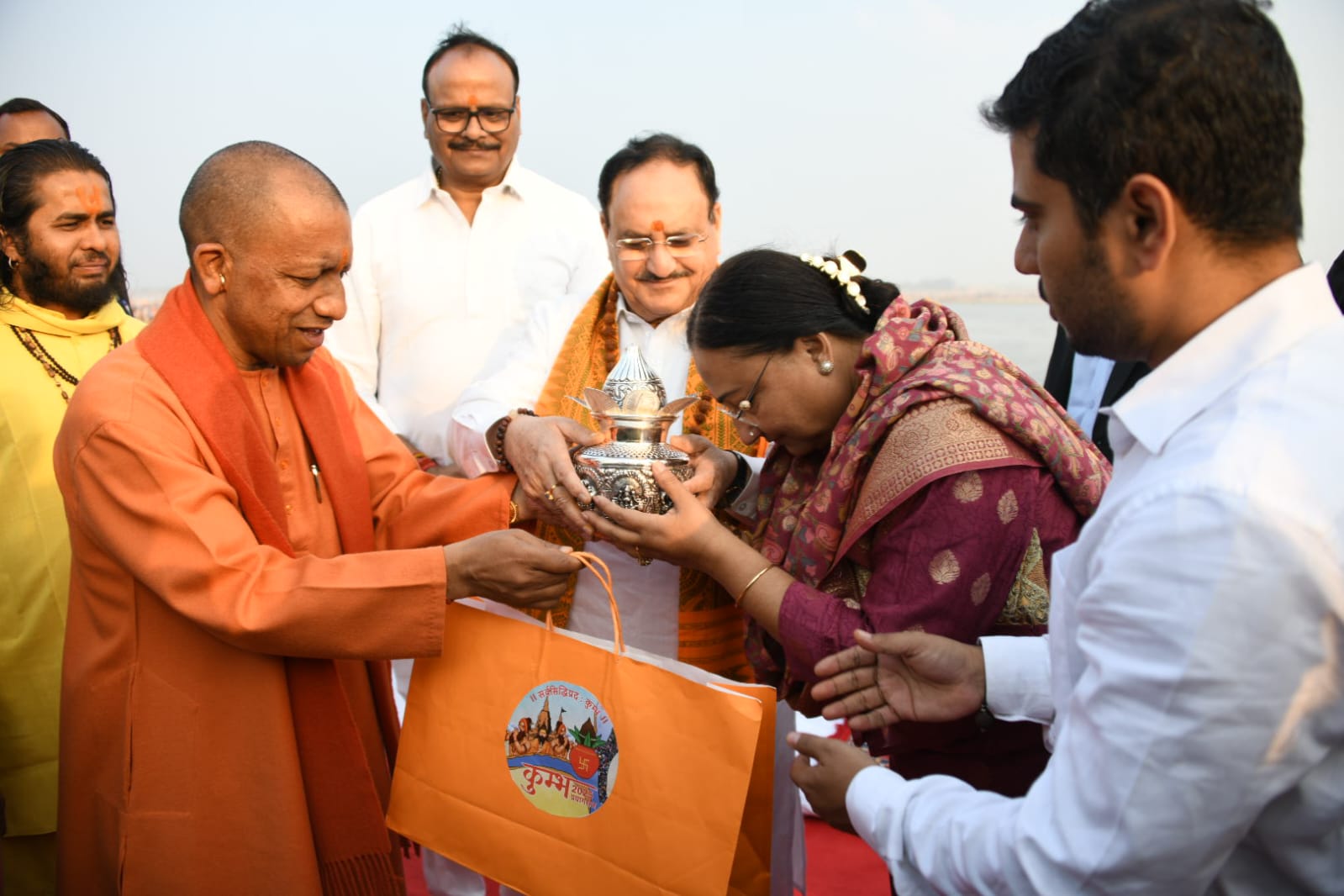 जेपी नड्डा परिवार समेत शनिवार को प्रयागराज पहुंचे। यहां महाकुम्भ नगर के त्रिवेणी संकुल में मुख्यमंत्री योगी आदित्यनाथ ने उनका स्वागत किया। इसके उपरांत सभी नेतागण अरैल घाट से फ्लोटिंग जेटी के जरिए संगम पहुंचे। यहां बीजेपी के राष्ट्रीय अध्यक्ष ने मुख्यमंत्री योगी आदित्यनाथ और अपने परिवार के साथ साइबेरियन पक्षियों को दाना खिलाया। इसके बाद उन्होंने सबसे पहले भाजपा नेताओं संग सामूहिक रूप से संगम स्नान किया, तदोपरांत पत्नी एवं परिजनों संग विधि-विधान से संगम में पावन डुबकी लगाई। इस दौरान संगम स्नान करने पहुंची जनता ने भी बीजेपी के राष्ट्रीय अध्यक्ष जेपी नड्डा और मुख्यमंत्री योगी आदित्यनाथ का जय श्रीराम और गंगा मइया की जय के जयघोष से अभिवावदन किया।