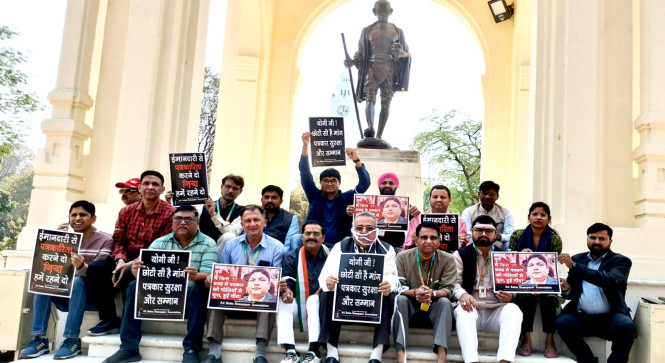 लखनऊ सीतापुर में दैनिक जागरण के पत्रकार राघवेंद्र वाजपेई की निर्मम नृशंस हत्या किए जाने के विरोध में ऑल इंडिया न्यूज़ पेपर एसोसिएशन, आईना ने गांधी प्रतिमा पर बैठकर शांतिपूर्ण विरोध दर्ज किया। इस शांतिपूर्ण विरोध में आईना के पदाधिकारी सहित कई टीवी चैनल के पत्रकार और समाचार पत्रों के संवाददाताओं ने पहुंचकर अपना विरोध दर्ज कराया सभी पत्रकारों ने प्रमुखता से पत्रकार सुरक्षा कानून बनाए जाने की मांग की। पत्रकारों में इस हत्याकांड को लेकर काफी आक्रोश देखने को मिला।