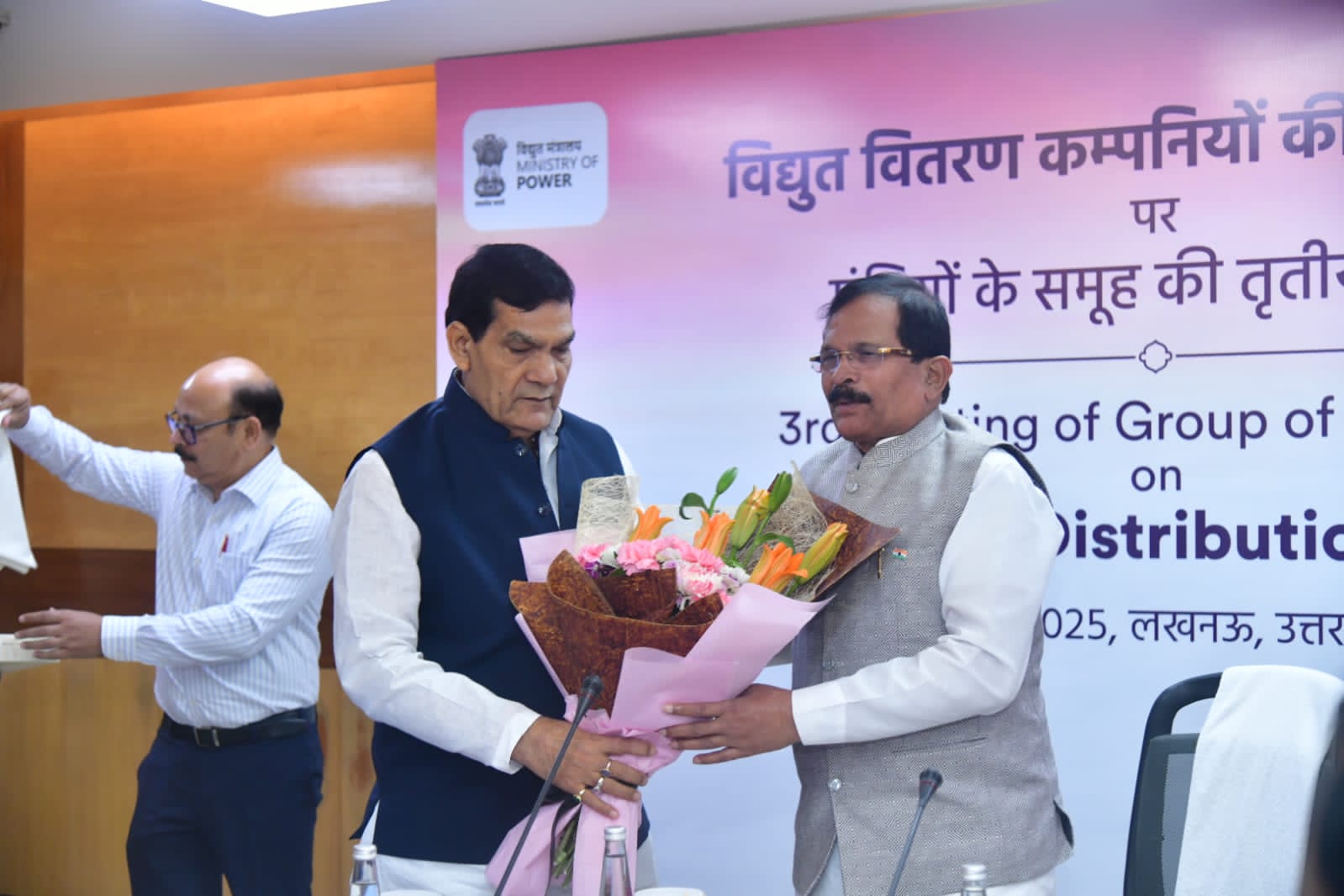 केंद्रीय ऊर्जा राज्य मंत्री श्रीपद येसो नायक की अध्यक्षता में देश के विद्युत वितरण एवं आपूर्ति व्यवस्था को और बेहतर बनाने, लाइन हानियों को कम करने, डिस्काम को हानियों से बचाने, उपभोक्ताओं को सस्ती दरों में कैसे बिजली मिले, विद्युत दरों में कमी लाने, निर्बाध विद्युत आपूर्ति, उपभोक्ताओं की समस्याओं का त्वरित समाधान, नई तकनीक के प्रयोग, उपकेंद्रों की व्यवस्था में सुधार, नवीकरणीय ऊर्जा आदि को लेकर लखनऊ में मंत्री समूह की योजना भवन, लखनऊ में बैठक हुई।