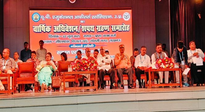 उत्तर प्रदेश एजुकेशनल ऑफिसर्स एसोसिएशन का एक दिवसीय अधिवेशन लखनऊ के सिटी मोंटेसरी स्कूल, गोमती नगर के सभागार में संपन्न हुआ। अधिवेशन में उत्तर प्रदेश के शिक्षा विभाग के लगभग 500 अधिकारियों ने प्रतिभाग किया। अधिवेशन में मुख्य चुनाव अधिकारी विवेक नौटियाल उप शिक्षा निदेशक माध्यमिक शिक्षा व सह चुनाव अधिकारी शशि भूषण सिंह विधि अधिकारी द्वारा कौस्तुभ कुमार सिंह को पुनः निर्विरोध अध्यक्ष निर्वाचित किया गया। मुख्य अतिथि डॉ संजय मोहन निदेशक माध्यमिक शिक्षा (सेवानिवृत्ति) व प्रताप सिंह बघेल निर्देशक बेसिक शिक्षा द्वारा नवीन कार्यकारिणी को शपथ दिलाई गयी। उत्तर प्रदेश एजुकेशनल ऑफिसर्स एसोसिएशन में कौस्तुभ कुमार सिंह अध्यक्ष, विनय कुमार महासचिव, डॉ रामचंद्र उपाध्यक्ष, प्रेमचंद यादव संयुक्त सचिव, स्वाती भारती सहायक सचिव, पवन कुमार तिवारी कोषाध्यक्ष, तथा सदस्य पद पर राजेश कुमार शाही, अनुराग श्रीवास्तव ,मनीष कुमार, शालिनी यादव ,आकांक्षा रावत, तथा प्रदेश स्तरीय कार्यकारी समिति में मंडल व जनपद स्तर पर संगठन के सदस्य के रूप में रेखा दिवाकर, श्याम किशोर तिवारी ,बुद्धप्रिय सिंह ,हेमंत राव ,संतोष कुमार राय, डॉ आशुतोष कुमार सिंह, राजू यादव, पूनम चौधरी, डॉ रजनीश प्रकाश तिवारी तथा अनिल कुमार निर्वाचित हुए।