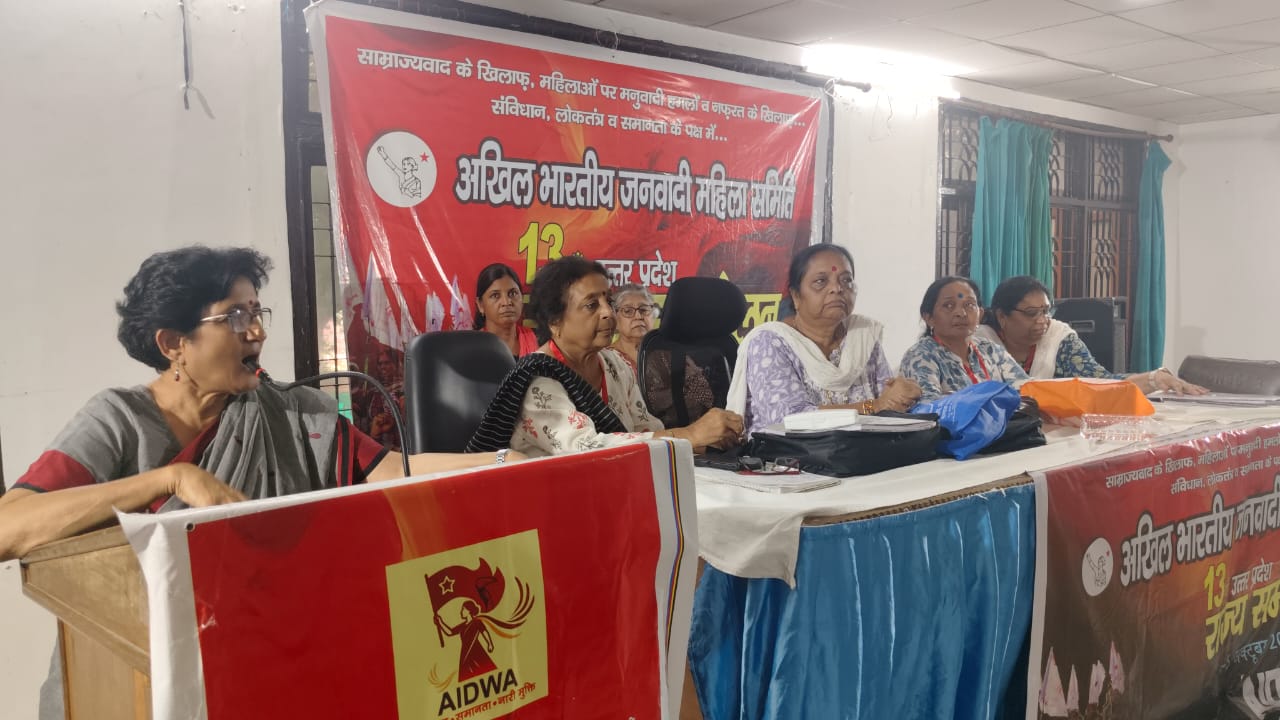 देश के 26 राज्यों में मौजूद तथा एक करोड़ दस लाख से अधिक की सदस्यता वाली अखिल भारतीय जनवादी महिला समिति (एडवा) की उत्तर प्रदेश इकाई का 13 वां राज्य सम्मेलन विभिन्न राजनीतिक, सामाजिक प्रस्तावों को पारित करने और नयी राज्य कमेटी के चुनाव के साथ सम्पन्न हो गया। आज हुसैनाबाद इलाके में स्थित नेहरू युवा केन्द्र के सभागार में राज्य सम्मेलन में 15 जिलों आयीं महिला प्रतिनिधियों ने अपने अपने क्षेत्र की समस्याओं पर चर्चा की। महिलाओं के विचार विमर्श में जो मुद्दे प्रमुख रूप से उभरकर आये, उसमें गाँवों में बेरोज़गारी की समस्या, पांच किलो राशन के वितरण में हाल के दिनों में आयी हुई रुकावट, बढ़ती महंगाई, महंगी होती उच्च शिक्षा प्रमुख थे। कई क्षेत्रों में शुद्ध पानी की अनुपलब्धता या उसका घर से दूर होना भी रेखांकित किया गया। सम्मेलन में राजनीति में नफरत के खिलाफ प्रस्ताव पारित किया गया। जनवादी समिति ने वर्तमान सरकार पर आरोप लगाया कि वह जान बूझकर मुस्लिम समुदाय के विभिन्न हिस्सों को आये दिन परेशान कर रही है। एक अन्य प्रस्ताव में उत्तर प्रदेश सरकार की स्कूल मर्जर कार्यवाही पर सख्त ऐतराज जताते हुये कहा गया कि इस फैसले का सबसे बुरा प्रभाव लड़कियों की शिक्षा पर पड़ेगा। अखिल भारतीय जनवादी महिला समिति ने बिजली के निजीकरण के प्रति भी विरोध जताया। एक और प्रस्ताव में अन्तर्राष्ट्रीय राजनीति में फिलीस्तीन की जनता के साथ एकजुटता प्रदर्शित करते हुये भारत सरकार से मांग की कि वह इजराइल से मजबूती से अपना विरोध प्रदर्शित करे।