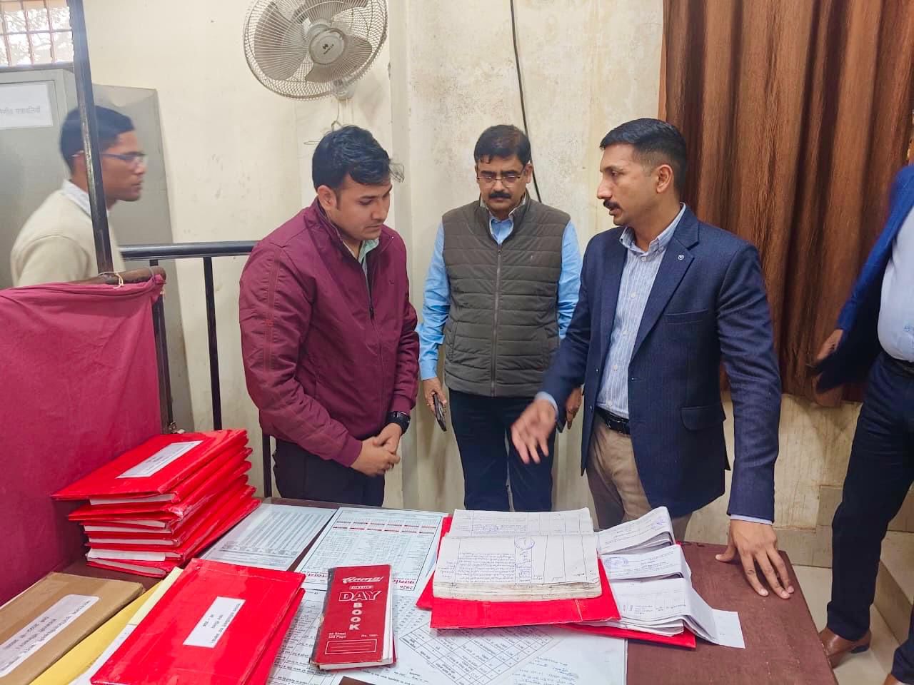 सभागार, अभिलेखागार और राजस्व लिपिक कक्ष का भी निरीक्षण किया गया। अभिलेखागार में अभिलेख कॉम्पैक्टर में सुव्यवस्थित पाए गए।