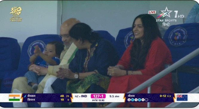 मैच के दौरान अमित शाह वीआईपी गैलरी में बैठकर खेल का आनंद लेते नजर आए। जैसे ही उनकी मौजूदगी की जानकारी दर्शकों को हुई, स्टेडियम में मौजूद लोगों का ध्यान उनकी ओर आकर्षित हो गया।