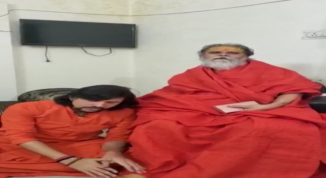आनंद गिरि ने पैर पकड़कर मांगी माफी