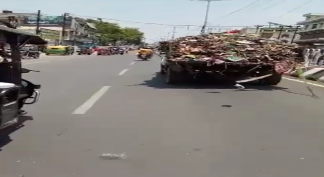 तेज़ी से सड़कों पर कूड़ा गिराते हुए दौड़ा रहे नगर निगम वाहन।