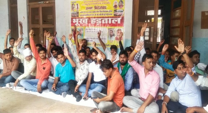 108 व 102 एम्बुलेंस कर्मचारियों ने की शिकोहाबाद के संयुक्त चिकित्सालय में भूख हडताल
