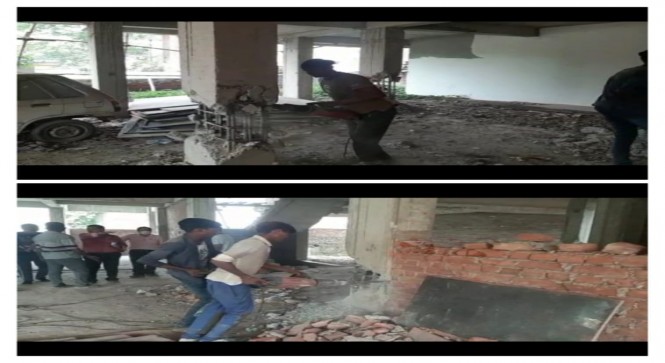रिवर बैंक कॉलोनी में पूर्व सांसद सऊद अहमद की अवैध बिल्डिंग को गिराने का कार्य जारी